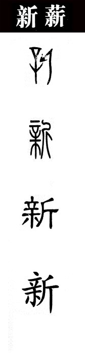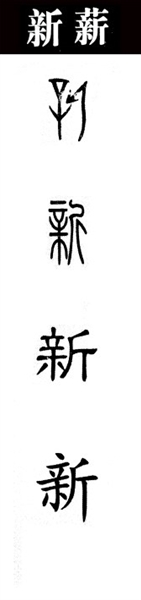 现在的“新”已经转化为形声字,左边的“亲“是声旁,右边的“斤”则保留原意。而“新”的本义也早已改变,代表伐木的“新”已经被“薪”取代,“新”则表示新生、初次出现的意思。 《画说汉字》编辑部