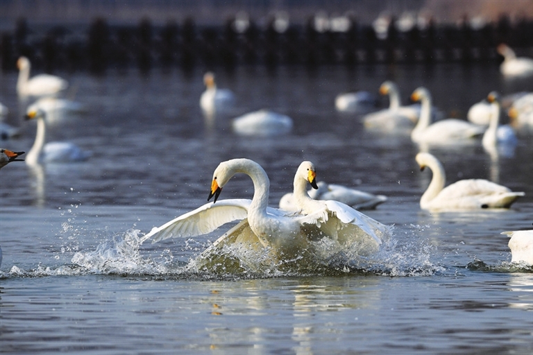 这些来自西伯利亚的“精灵”,近些年每到冬季都会沿着山西境内的汾河、桑干河等河谷地带,飞越数千里来到这片水域“度假”。