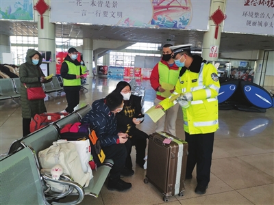“回老家赶集时,可不能坐超员面包车,也不能图方便坐拖拉机、农用车……”1月17日9时,交警迎泽一大队民警便来到太原汽车站,展开春运安全出行宣传活动。民警将宣传材料分发给旅客,同时不忘叮嘱司机春运途中一定要杜绝超员、超速等交通违法行为。