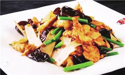 再说说配菜,首先要选葱白紧实的葱切成马蹄状,为的是炒出来的葱不散;蒜薹更是传统过油肉的标配,选用蒜薹是因为它气味平和,不会夺走主料的味道,再搭配木耳或玉兰片调节口感。当然,还有一味不能少的调味品,就是醋,何时烹醋,是单独烹还是与其他调料中和后一起烹,口感的差异很大。最正确的做法是其他调料都加入之后,最后在锅边淋醋,要让菜有醋香而不是有醋味,一般采用酸度为4.5度的醋,过酸或者过淡都影响口感。好的一道过油肉要“酥、香、软、嫩、滑、爽”。