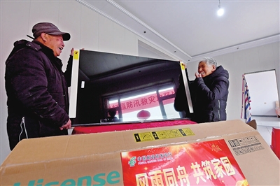 “谢谢你们啊,没想到党和政府帮助俺重建了房屋,还送来电视机。”郑耀贵一个劲儿地表示感谢。老人说,19日,施工队把家里的暖气和空气源热泵连接上了。今天早上,他早早起来,一进新房就感觉暖和多了。“上了年纪了,怕滑倒,我就没让施工队铺地砖。现在,这暖气有了,墙也刮白了,今晚我就住在新房了。”老人说,今天是入住新房的日子,有爱心单位和村民一起给暖房,真是让人倍感温暖。