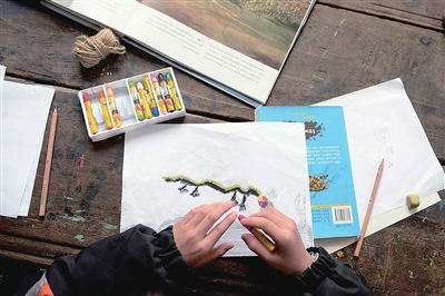 1月18日,小朋友在大元社里画画。