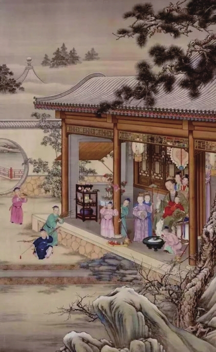 在这幅画中,乾隆皇帝没有了昔日的威严与严肃,怀里抱着幼小的皇子,身边围绕着嬉戏的孩童,一幅安静和美的画面。即便是皇帝,在这个美好的节日里,也只是一个普通的家人或父亲,可以舒心享受片刻家庭团聚的欢乐时光。