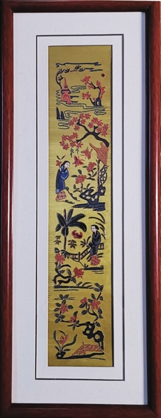 我对老绣品的认知源于四年前太原美术馆的一场山西民间刺绣展。那些绣品古色古香的图案、灵巧多变的刺绣手法深深吸引了我。曾经,它们是衣袖、荷包、腰裙等老衣物的组成部分,经过现代的装裱方式,呈现出古今交汇的独特美感。我驻足细看,留恋不已,对老绣品的喜爱便在心底悄悄发芽了。 今冬,拿到新房钥匙后不久,便约了好友到小井峪古玩市场,希望能淘到几件有眼缘的老东西,来装点我的新居。我俩在摊位间边逛边看,突然,一幅摔碎了镜框的绣品吸引了我们的目光。好友是位资深老绣品爱好者,她悄悄捏我一把,低声说:“这是一幅难得的老绣品,一定要拿下。”虽然我还看不大懂新老,但却能感受到这幅绣品的精美。在冬日阳光的映照下,绣品的丝线闪现着特有的绚烂迷人的色彩。但见绣面上亭台水榭旁,两个仕女模样的人物造型秀美、身段婀娜,细看眉眼开脸,绣得尤为灵动精致,表情温婉动人,她们身旁一树树桃花开得灿烂,蝴蝶围绕着美人翩翩飞舞,真是好一派春光啊……直看得我顿生一种急于入怀的冲动,于是和摊主攀谈起来。摊主是一位气质温婉的女士,她介绍说,这件绣品应该是清代一对衣襟中的一件,另一件已经糟朽,品相太差,没法装裱了。她说她自己也会刺绣,但绣不出那样细致的面相。我们越说越投缘,她很是认同我们对这幅绣品的欣赏。那天因为意外打碎玻璃,让她有些沮丧。一番讲价,我终于如愿以偿。看到她将绣品出手后恋恋不舍的失落模样,我急切地告诉她:“放心吧,我会很好地珍惜它、爱护它,就让我来接手做它新的看护人吧!” 我小心翼翼地抱起绣品,到附近的画店里重新配好玻璃。带回新房后,一连几天都沉浸在收获的喜悦中。我把绣品挂到了适合的位置,常常独自欣赏好久,也会邀请好友们过来一起观赏。每每此时,大家都会凑上前去端详,说能收到这么好的一幅绣品真是有运气。那天同行的好友也说:“要不是你有新房等着装饰,我是断然不会把这幅绣品让给你的。”听完大家都笑了,就又说起物和人都是要讲缘分的话题…… 现在,老绣品已然是收藏市场的一个热门种类了,人们越来越认识到它的魅力和价值。老绣品经重新装裱,或改装成团扇、小包,甚至是耳环和项链等,呈现出老物新用的纷呈创意。老绣品的美无可替代,也是新品无可比拟的,或许是因为这一针一线里都收藏着岁月吧!