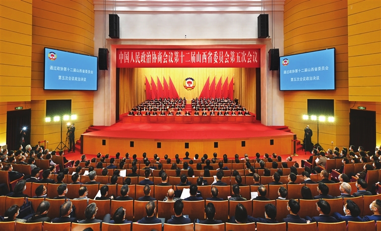 会议通过了政协第十二届山西省委员会第五次会议关于常务委员会工作报告的决议,政协第十二届山西省委员会提案委员会关于省政协十二届五次会议提案审查情况的报告,政协第十二届山西省委员会第五次会议政治决议。