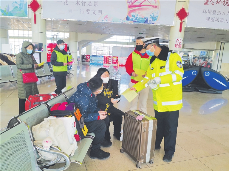当天早9时,交警迎泽一大队大队干部和安全中队民警来到太原汽车站展开宣传活动。民警将宣传材料分发给旅客,叮嘱大家不要乘坐超员车辆,同时告诫司机,春运途中,一定要杜绝超员、超速等交通违法行为。