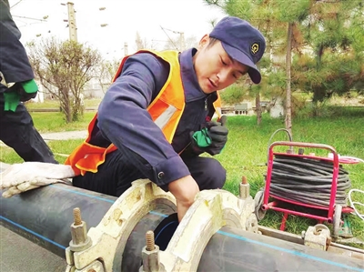2月7日8时,董旭伟带着同事们再次来到现场,有的插管子,有的焊接,忙得不亦乐乎。干上一会儿活儿,手套就被冻得硬邦邦的,董旭伟更换了7副手套,一弯曲手指,手套上粘连的冰碴子就咔嚓咔嚓响。为了提高效率,他干脆徒手插管、焊接。