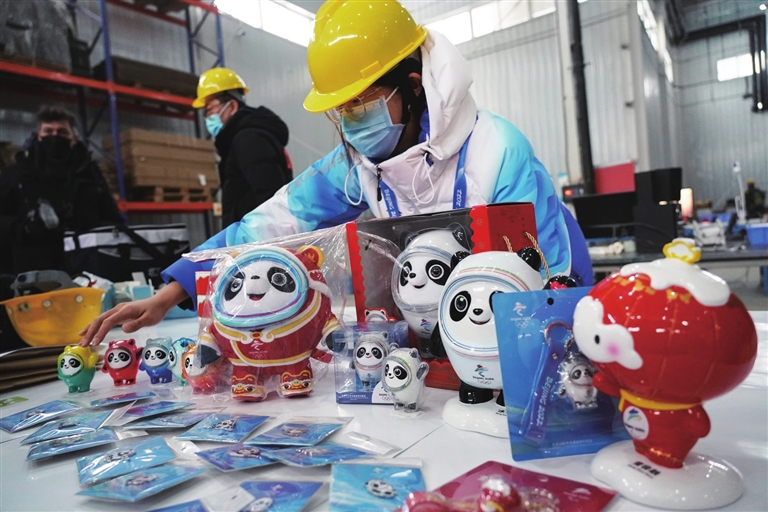 在金马工业园仓库内,北京冬奥组委工作人员还展示了包括新春特别版“冰墩墩”毛绒玩具在内的更多带有冬奥吉祥物元素的特许商品样品,相关负责人表示,这些特许商品也将提高供应量,满足大众购买需求。 新华社记者 陈钟昊 摄