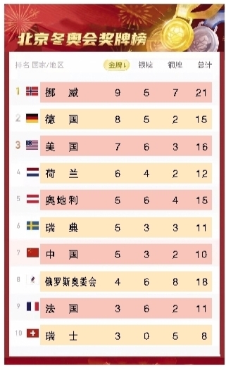 中国代表团金牌数追平冬奥会历史最佳战绩