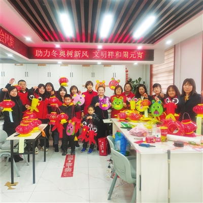 刘阿姨举着自己制作的花灯说:“我蛮喜欢做手工活儿的,以前过节,家里的灯笼都是自己做的,今年参加社区制作花灯活动,让我找回了年轻时的自信,咱们老百姓过年过节图的就是个心气儿,图的就是个红火热闹。”