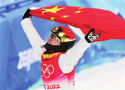 决战一触即发,为了向最后的胜利发起冲击,决赛6名选手其中5位都选择了5.0难度系数这一当今世界最高难度动作,齐广璞第三位出场,他高高跃起,一系列眼花缭乱的翻转后稳稳落地,齐广璞振臂高挥,他知道自己已做得足够出色。最终齐广璞以129分的高分无可争议地摘得金牌,也实现了自己运动生涯中最大的梦想。