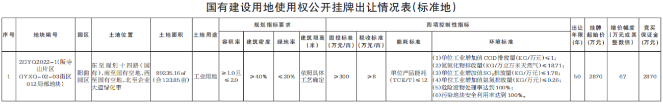 四、本次挂牌出让1宗“标准地”实行双合同一承诺管理,竞得人签订《国有建设用地使用权出让合同》时,须同时签订《“标准地”项目投资建设合同》,并自愿签署《企业投资工业项目“标准地”投资承诺书》。