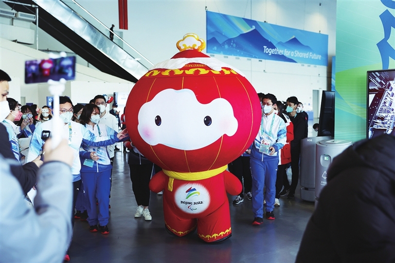 3月8日,北京2022年冬残奥会吉祥物“雪容融”出现在主媒体中心。当日,北京冬残奥会主媒体中心举办集体采访活动,介绍北京2022年冬残奥会吉祥物“雪容融”设计理念,并邀请“雪容融”进行现场互动。新华社发