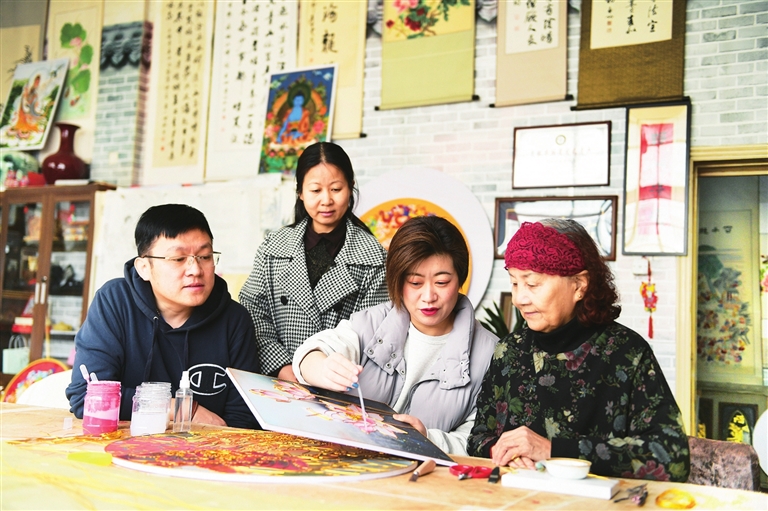 在制作过程中,庄秋燕将珍珠、玛瑙等天然宝石加入其中,不仅提升了美感,也使画作更具收藏价值。同时,她还将传统技法与当代审美结合,以生活用具为载体,创作出了鲜活灵动的艺术作品。