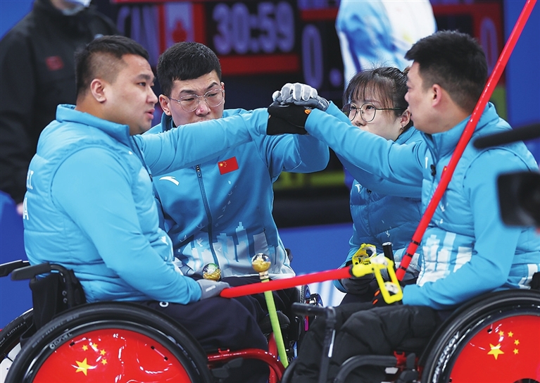 作为卫冕冠军,中国轮椅冰壶队在本届赛事前两场比赛发挥不佳,先后负于加拿大队和瑞典队。两连败后,中国队及时调整,队员们团队协作,状态也渐入佳境,四垒王海涛屡献“神仙球”,最终收获八连胜。