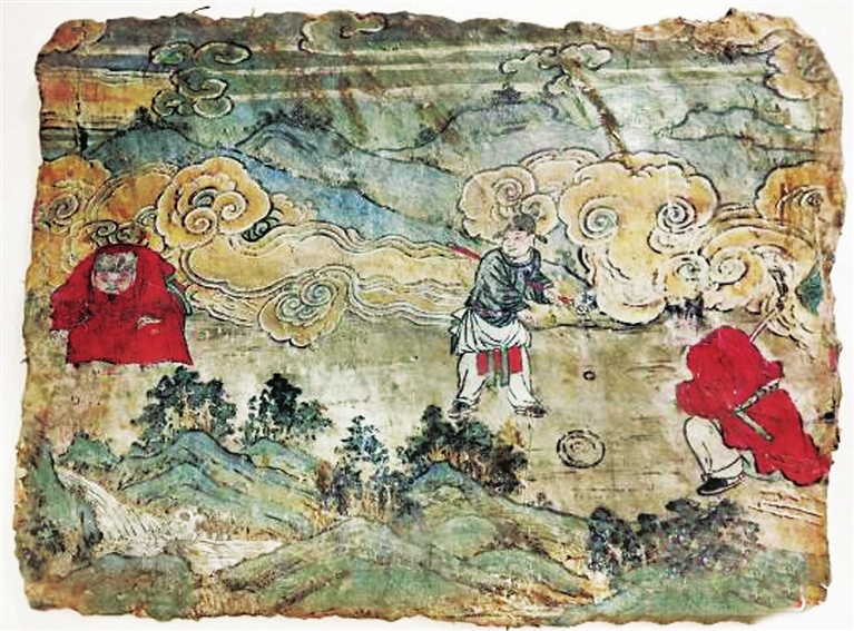 最形象、最完整反映捶丸活动的,是广胜寺水神庙元代壁画中的《捶丸图》。该图绘于明应王殿西壁,图中两名男子着朱色长袍,右手各握一短柄球杖。左一人正面俯身做击球姿势,右一人侧蹲注视前方地上的球穴,稍远处有两名侍从各持一棒,棒端为圆球体,居中者伸手向左侧击球人指点球穴位置。这是元代民间捶丸活动的真实反映。