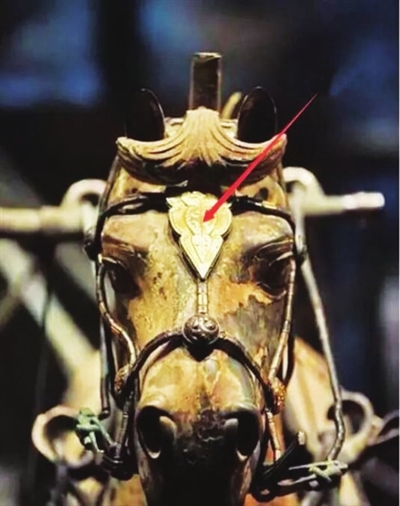 汉代以前,当卢是很常见的马具。国内出土的最精美的当卢都来自汉代王侯墓葬,比如著名的西汉海昏侯墓出土了80多件当卢,尤其是几枚上宽下窄的青铜错金神兽纹当卢,更是华丽无比,龙、凤、虎各种纹饰一应俱全。