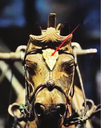 汉代巫术气氛浓厚,视陪葬之马为巫蹻,为了让它能够更好地履行“蹻”的职责,人们为它准备了各种适用的“法器”,当卢正是其中之一。因此,作为重要马饰的当卢图案,作用是增强马的神性,使它尽量朝龙靠拢,这样才能够更好地引领墓主之灵升入天界。故而,当卢制作精美。