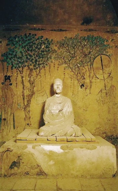 菩提树象征着智慧、知识,佛门弟子把菩提树奉为圣树。佛祖释迦牟尼在菩提树下得道成佛,又在菩提树下涅槃升天。莫高窟壁画中的菩提树随处可见,不计其数,最为高大的是晚唐第十七窟藏经洞北壁的两株菩提树(图④),苍劲多节,藤蔓缠绕,枝叶繁茂,郁郁葱葱。