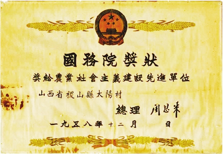山西省档案馆收藏的1956年省第一届党代会卷宗中,有一份稷山县委、县政府介绍卫生模范太阳村的典型发言材料,记载着太阳村“共有218户,913口人,耕种着3680亩土地,全村饲养大牲口190多头,鸡2000多只……在这里牛马有棚,猪鸡有圈,柴草有场,每个厕所都有盖板,垃圾都装在箱内”“大街小巷没有坑洼,阴沟里也找不到污水,粪堆内也看不到蛆虫,因而消灭了滋生苍蝇、蚊子、跳蚤、虱子、臭虫等病媒虫害的场所”“十岁的小姑娘刘牡丹在姥姥家里感染了感冒,回家后就主动到保健站去报告。今春太阳村的人们听说外村有流行性感冒,人们都戴上口罩,少数人没口罩就不好意思出门”。