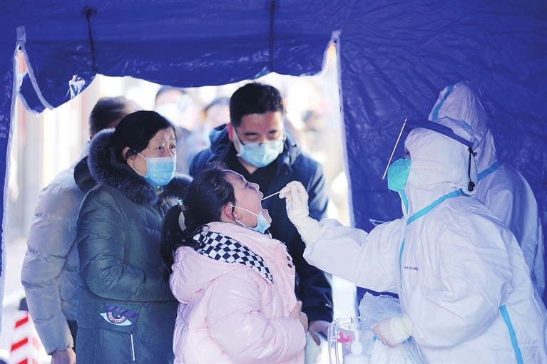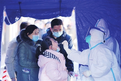 尖草坪区槐园社区居民正在做核酸检测。 张昊宇 徐浩轩 摄