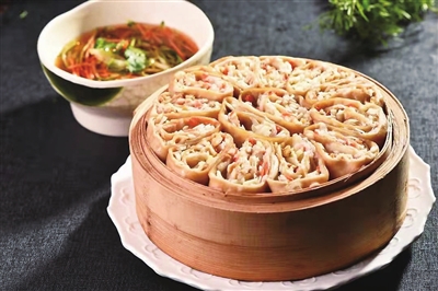 莜面和好、蒸熟之后,取一块,擀成一大张的薄皮。再把土豆、胡萝卜、葱或其他时令蔬菜切成丝,均匀撒在薄皮上,从一头卷起,卷成长筒形状。然后切成小段,放在笼屉里蒸10分钟,一笼飘着香味的莜面饨饨就做好了。拌上卤料即可食用。