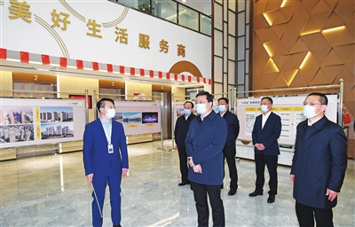 龙投集团是市政府直接管理的大型国有独资企业,资产规模位列全国城投公司百强。韦韬来到企业大厅,结合展板听取集团基本情况、在建项目、发展规划等汇报;走进智慧停车管理云平台,通过大数据系统察看智能停车场、汽车充电站等设施布局及实时管理;步入商管公司,了解康养、文旅、物业等项目规划运营情况;在“六新”创新工作室,听取建筑信息模型技术在工程领域全生命周期应用管理介绍,强调要坚持市场导向,规范投资决策,加强现金流管理,做到审慎投资、科学投资、有效投资,确保企业持续健康发展。