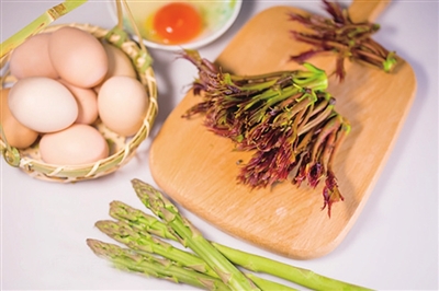 家里的椿芽做法简单,最常做的就是椿芽煎蛋。有着特殊香味的椿芽遇上厨房常客鸡蛋,便能散发出诱人的滋味。奶奶做时会加一勺猪油,让这道菜的味道更加醇厚。有时,她还会别出心裁地切一只青椒放进去,让香椿煎蛋的味道更加丰富。就这样,一道简单的椿芽煎蛋就成为每个春天最让人怀念的味道,奶奶也靠着一道椿芽煎蛋让在外的子孙们回忆满满、常常思念。