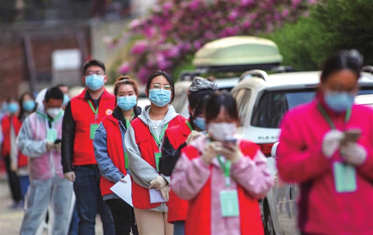 4月3日,我市某区发现感染者。省市领导高度重视,相关部门立即启动应急响应机制。对密接者、次密接者落实管控,对涉及的场所划定封控区、管控区、防范区,有序组织流调溯源、核酸检测等相关防控处置工作。一时间,紧急支援的医务人员,快速集结的社区干部,自觉下沉的网格员,主动请缨的志愿者……织牢了全方位的战“疫”防护网。