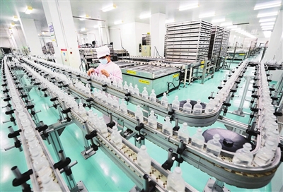 1月14日,河北石家庄一家制药有限公司的工人在医药生产车间工作。 新华社发
