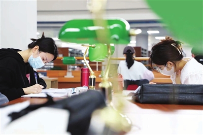 5月10日,山西省图书馆恢复对外开放。读者在进入前,需要提前预约,查验“三码”(省图场所码、行程码、同行密接人员自查)及提供5日内核酸检测阴性证明。张昊宇 王韵菲 摄