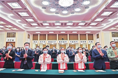 5月10日上午,庆祝中国共产主义青年团成立100周年大会在北京人民大会堂隆重举行。 新华社记者 岳月伟 摄