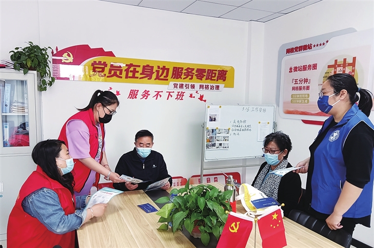 在主攻清单中,新村社区明确了网格党组织、网格党群服务微站的职能宗旨,并探索和社区党支部联通互动。根据“社区在职党员、居民党员、驻地单位在职党员、志愿者党员”4种身份,将社区党支部在册的108名党员分组管理,并成立党员志愿者队伍,为居民提供服务,使网格工作真正做到“排查在一线、化解在现场、宣传在身边、服务在门口”。
