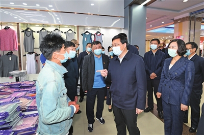 批零住餐等服务业受疫情冲击影响较大。在山西大酒店,韦韬询问酒店住宿率及餐饮客流量,了解经营恢复情况,要求有关部门落实助企纾困政策,加大消费券投放力度,推动开展促销活动,帮助企业渡过难关。在山西贡天下电子商务有限公司,韦韬了解农特产品销售品类,询问货源组织、物流寄递等运行情况,观看直播带货实况,希望企业创新运营模式,用好线上线下销售渠道,带动我市更多优质农产品走出山西、走向全国。在万水物贸城,韦韬察看物流恢复情况,走进五金店了解销售收入,叮嘱园区负责人要坚持人、物、环境同防,落实从业人员防疫措施,加强运营管理,强化物流保畅,不断提升机电和五金行业专业市场辐射能力。在唐久超市有限公司,韦韬走进物流仓库了解商品配送流程,步入鲜食工厂察看食品加工设施,希望企业严格食品安全管控,健全销售服务网络,办好市民家门口的便民店,为提振消费作出贡献。在东都服装批发市场,韦韬随访商户并亲切交谈,询问市场客流、批零销售等情况,勉励商户创新销售模式、诚信守法经营,要求相关部门加大帮扶力度,祝愿企业发展蒸蒸日上。