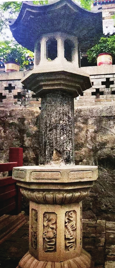 太山龙泉寺正院西北隅与唐碑对称的位置上,矗立着一通八角形经幢。幢文上首题“大方广华严经之幢”,另有“文德元年”(888)字样。文德元年是唐僖宗的最后一年,距今已有1100多年的历史。“大方广华严经之幢”是1998年工作人员在太山后山勘察时无意间发现并保护下来的。 1940年12月,日本人日比野和水野清一夫妇曾登临太山,他们所著《山西古迹志》中记载:“虽然经幢上部已经缺失,但残高有1米左右。经幢上的石笠雕着丰盈的莲花,下方的方趺上雕着羽翼反转的怪兽。幢身为八角形,高64厘米,显得比较短矮一些。”现存经幢与此记载相吻合,因此证实经幢为太山龙泉寺遗物。 华严经全称《大方广佛华严经》。女皇武则天崇奉三宝,大力弘扬大乘佛法,常为六十华严不完整而遗憾,听说西域于阗有华严全经梵本,就派使者去西域求请,并请译经人于武周证圣元年(695)开始在东都洛阳内廷大遍空寺内翻译。武则天曾亲临译场,关注译事,为华严大经写序文、题名。至公元699年,历时4年完成了八十华严的翻译,可以说,八十华严的翻译以及后来在中国的弘扬,是由武则天促成的。 然而这批珍贵的佛教经典在经历了“武宗灭佛”后,被毁于一旦,令人叹息。灭佛政策执行了短短数年,佛寺财产被剥夺,僧尼还俗,寺庙毁废,经籍散佚,佛教由极盛而走向衰微。 会昌六年(846),武宗驾崩,笃信佛教的唐宣宗即位。宣宗即位后立即废止了武宗的灭佛政策。 龙泉寺现存经幢,是在经历唐“武宗灭佛”等事件后,对圣历、长安年间所刊华严石经幢的补刻或翻刻遗存,能保留至今,实属不易。