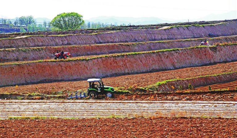 5月23日,娄烦县静游镇高标准农田建设项目正在加紧建设。该项目计划建设高标准农田1.1万亩,通过土地平整、土壤改良、科技应用等手段,建设成为集中连片、设施配套、高产稳产、生态良好、抗灾能力强的农田。赵世凯 摄