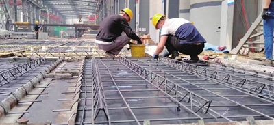 走进晋源区先进制造产业园的太原远东建设公司生产车间内,马达转、机器响、火花闪,负责焊接、切割、固模、浇筑、养护的工人们各司其职,正在紧张有序生产用于太忻大道建设使用的预制桥梁等水泥构件产品。