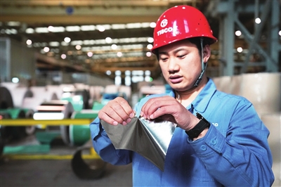 公司党委书记、总经理王天翔说:“两年来,我们时刻牢记总书记嘱托,加大攻关力度,将600毫米不锈钢精密箔材的厚度从0.02毫米轧到了0.015毫米,这是新的世界纪录。除‘手撕钢’外,企业还实现了0.07毫米超平不锈钢精密带材、无纹理表面不锈钢精密带钢两项新产品全球首发。”