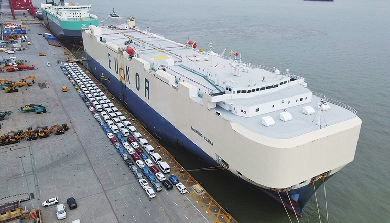 5月25日一早,上海外高桥海通码头上,1000多辆上汽集团自主品牌名爵和大通品牌新车正列队缓缓驶上滚装船,被运往澳大利亚。疫情下,中国汽车出口从未停步,海外销量保持增长。