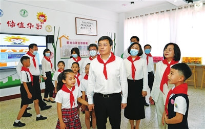 慰问中,韦韬详细了解全市学前教育、中小学教育发展情况。他指出,少年儿童是祖国的花朵,是民族的希望。孩子们健康快乐成长是我们最大的心愿和共同的责任。希望广大少年儿童牢记习近平总书记的殷切期望,传承红色基因,刻苦勤奋学习,锻炼强健体魄,从小听党话、感党恩、跟党走,争做德智体美劳全面发展、担当民族复兴大任的时代新人。广大教育工作者要深入贯彻党的教育方针,聚焦立德树人根本任务,加强教学研究,丰富教学手段,以真情哺育、用爱心浇灌,引导少年儿童扣好人生第一粒扣子。各级党委、政府要着眼办好人民满意教育,推动学前教育普惠发展、义务教育均衡发展,不断加强师资队伍和教学硬件建设,努力实现教育高质量发展。时刻绷紧疫情防控这根弦,落细落实常态化疫情防控举措,确保师生身体健康和校园安全。