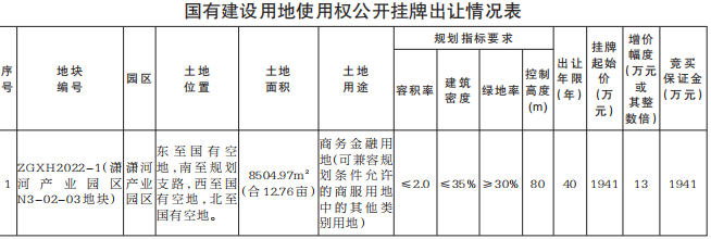 一、挂牌出让地块的基本情况和规划指标要求详见附表。