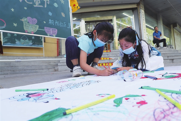 6月2日,南寨街道朝阳社区开展“粽情端午 童画未来”主题活动,孩子们用手中画笔画出心中的端午祝福。张昊宇 摄