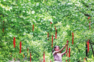 6月3日,在贵州省贵阳孔学堂举行的端午活动上,一名小朋友系“祈福带”。均据新华社发