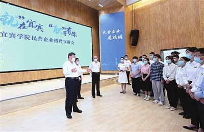 今年我国高校毕业生预计达1076万人,同比增加167万人,创历史新高。习近平十分关心高校毕业生就业情况,来到宜宾学院考察调研,察看毕业生创新创业代表作品展示,了解学校开展就业创业指导服务工作。学校招聘大厅内,正在举行企业招聘宣讲会,习近平向教师、学生、企业负责人了解企业招工的需求和毕业生签约率等情况。习近平强调,党中央高度重视高校毕业生就业,采取了一系列政策措施。当前正是高校毕业生就业的关键阶段,要进一步挖掘岗位资源,做实做细就业指导服务,学校、企业和有关部门要抓好学生就业签约落实工作,尤其要把脱贫家庭、低保家庭、零就业家庭以及有残疾的、较长时间未就业的高校毕业生作为重点帮扶对象。习近平对同学们说,幸福生活是靠劳动创造的,大家要保持平实之心,客观看待个人条件和社会需求,从实际出发选择职业和工作岗位,热爱劳动,脚踏实地,在实践中一步步成长起来。他勉励同学们自觉践行社会主义核心价值观,努力做到德智体美劳全面发展。