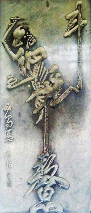 西安碑林的清《魁星点斗图》(图②),由儒家“正心修身,克己复礼”八字组成魁星形象,生动巧妙。从上到下依次是:克(右手和笔)、心(帽子和眼睛)、正(其余五官)、修(躯干肋骨)、己(左手上之斗)、复(左臂和腹部)、礼(臀及左腿,“禮”字的简化应该属于草书取形)、身(右腿)。
