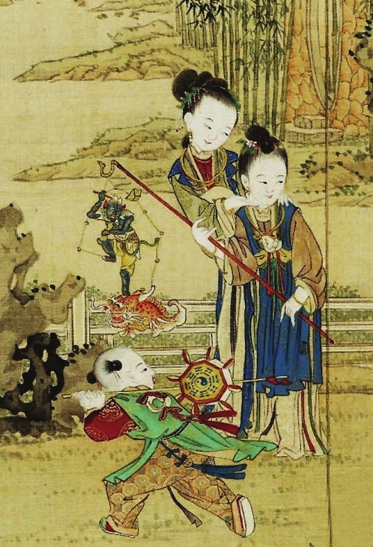 清《升平乐事图》之七(图⑤),台北故宫博物院藏,图中女子亦手持“魁星点斗”玩具,刻画细腻。