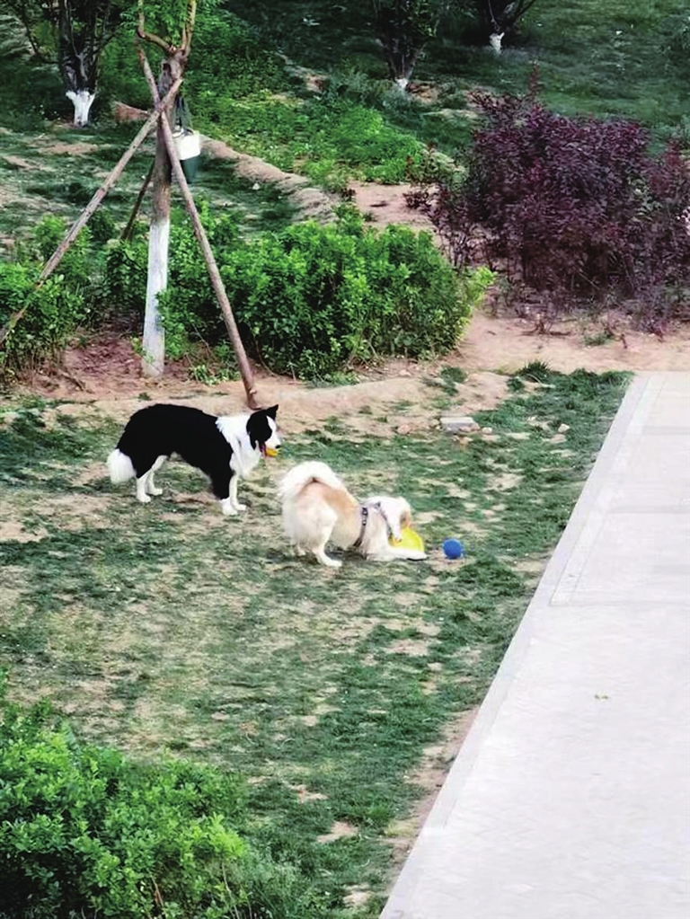 6月12日傍晚7时许,记者来到解放路钟楼街口附近的一个街边小游园。这里很漂亮,各种鲜花竞相开放。可有一点让人感觉不和谐,就是不少宠物狗正在草坪内撒欢嬉闹。