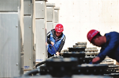 6月19日,千峰路雨水泵站主体结构已建设完成,工作人员正在调试设备。该泵站投用后,将有效缓解城市内涝的发生。李学军 宋卫东 摄