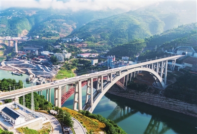 6月20日,一辆郑渝高铁列车行驶在重庆奉节梅溪河双线特大桥上(无人机照片)。当日,郑州至重庆高速铁路襄阳东至万州北段开通,郑渝高铁实现全线贯通运营。郑渝高铁北起河南省郑州市,南至重庆市,途经河南、湖北、重庆3省市,全长1068公里,是我国“八纵八横”高速铁路主通道的重要组成部分。新华社发 (舒 鹏 摄)