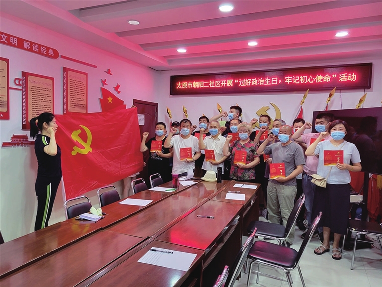 此次主题活动中,社区党委书记首先为15名党员送上“政治生日”贺卡,并再次带领大家学习了党的光辉历史,每一位党员还发表了“政治生日”感言。最后,面对鲜艳党旗,大家紧握拳头,重温入党誓词:“我志愿加入中国共产党,拥护党的纲领,遵守党的章程……”誓言铿锵有力,传递着同志们对党的无限忠诚,以及为共产主义事业奋斗终身的庄严承诺和坚定信念。